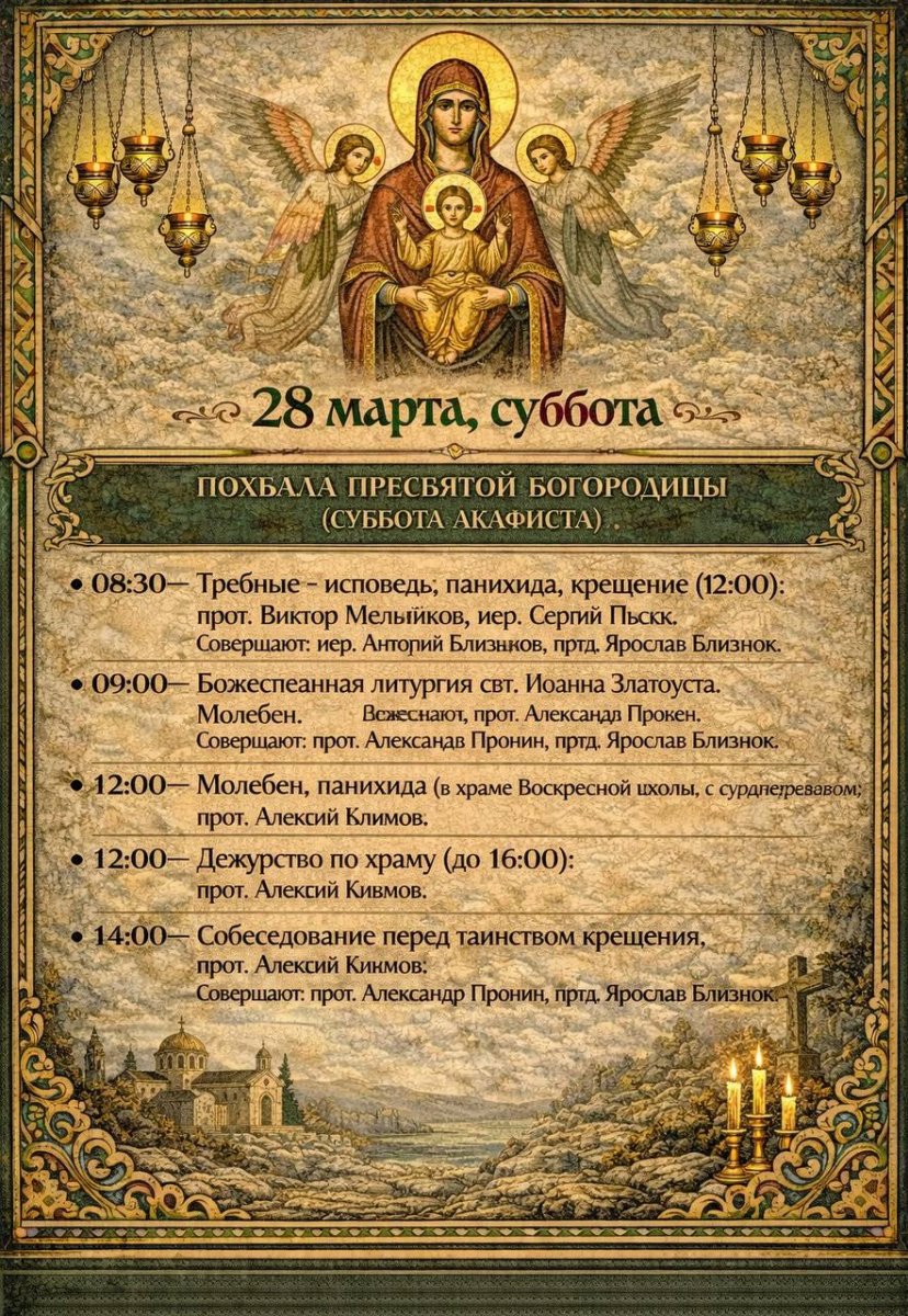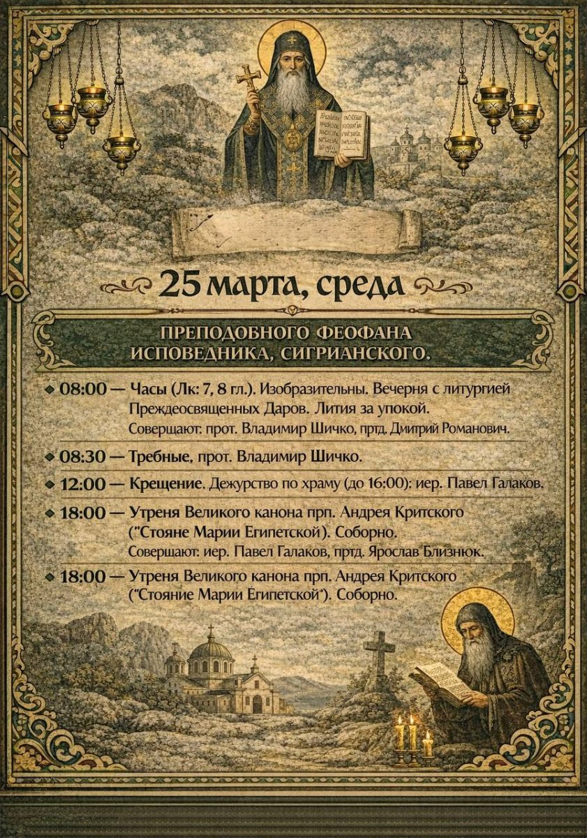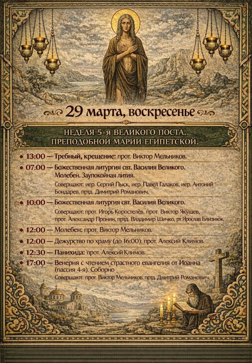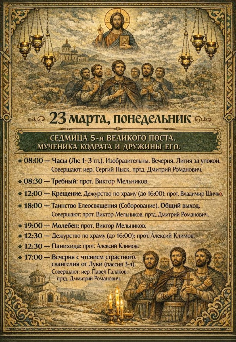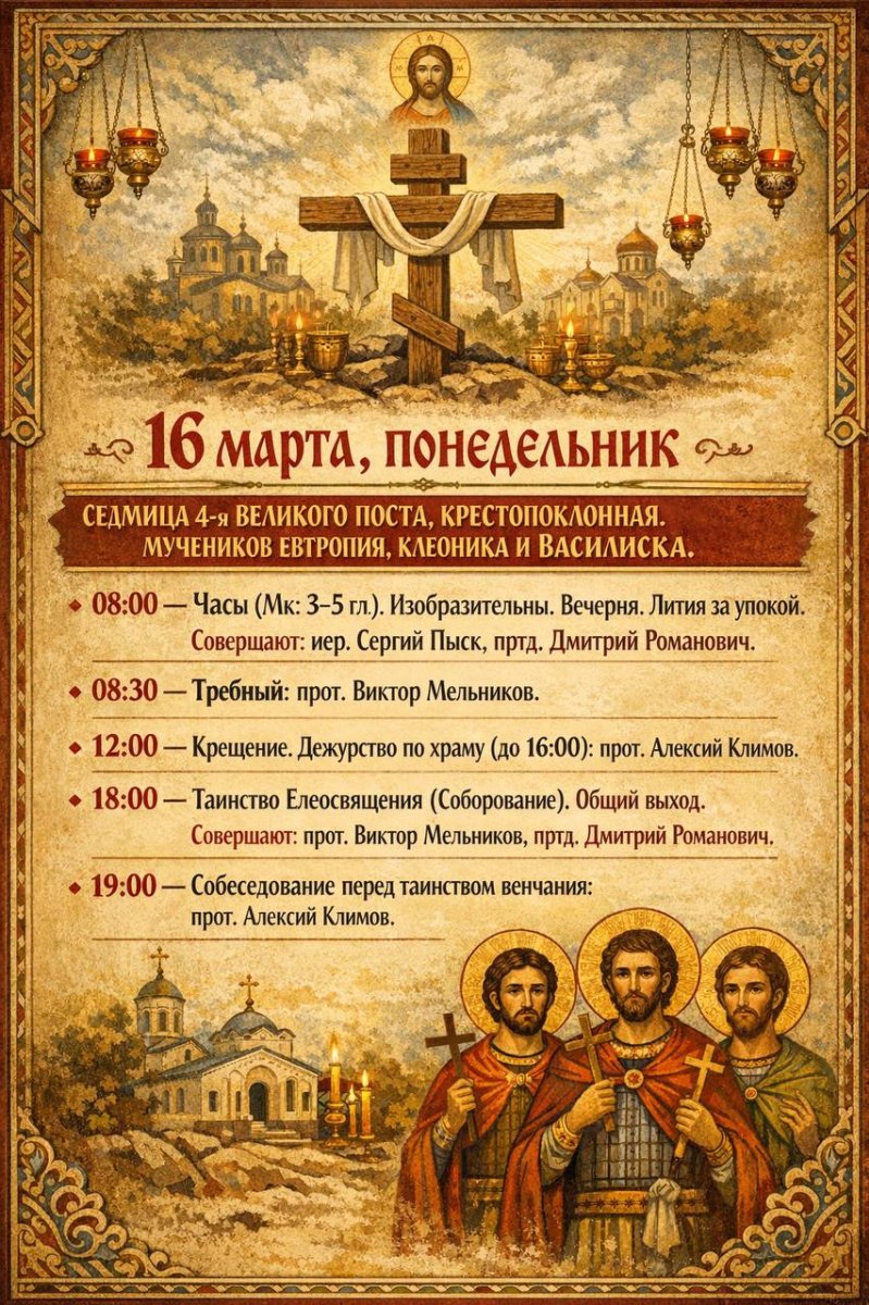 Расписание богослужений в нашем храме с 16 по 22 марта