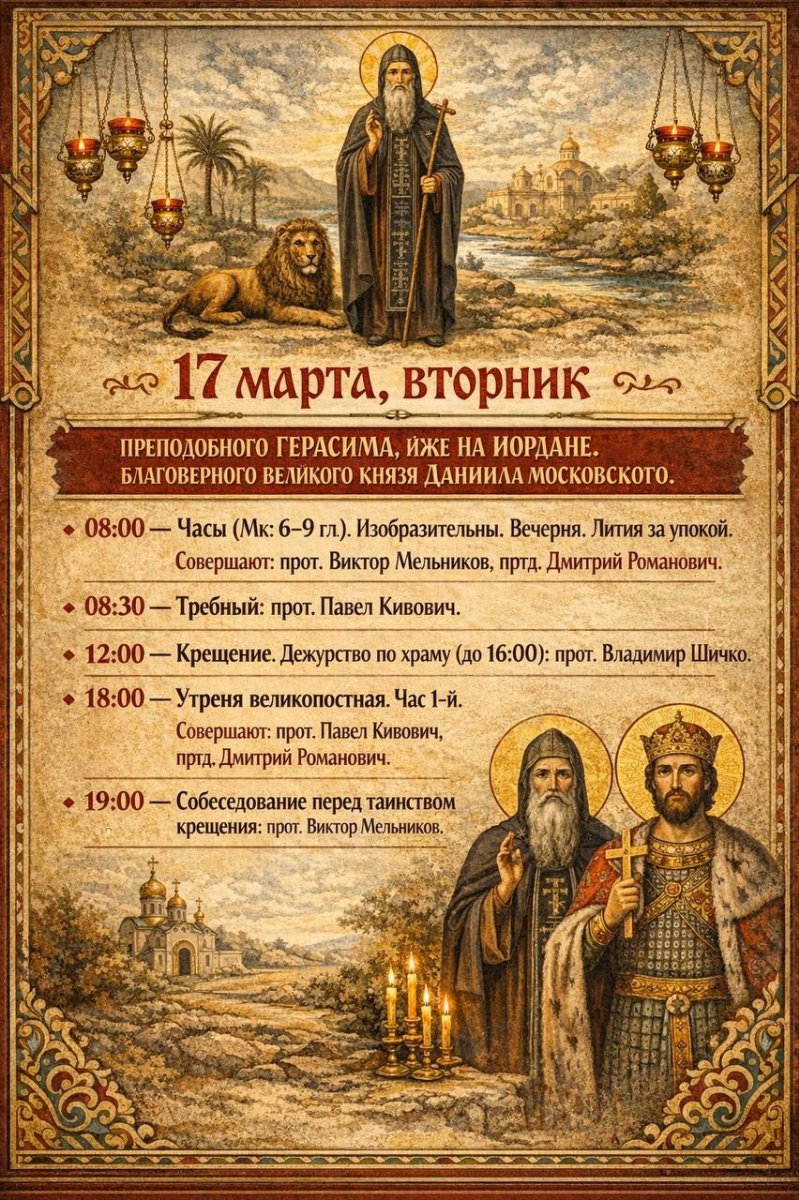 ПРЕПОДОБНОГО ГЕРАСИМА, ИЖЕ НА ИОРДАНЕ. БЛАГОВЕРНОГО ВЕЛИКОГО КНЯЗЯ ДАНИИЛА МОСКОВСКОГО