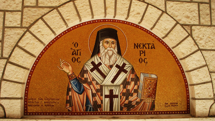 Святитель Нектарий, митрополит Пентапольский, Эгинский чудотворец. Один из самых почитаемых греческих святых второй половины XIX – начала XX столетия. Святитель Александрийской Церкви, кротко претерпевший немало лишений, будучи отстранённым по навету от архипастырского служения. Прославился многими чудесами и исцелениями, в народе до сих пор известна поговорка: