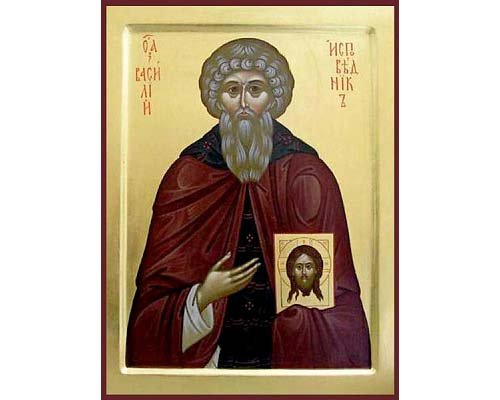 Преподобный Василий исповедник, епископ Парийский, жил в VIII веке. Он был избран на епископскую кафедру жителями города Парии, почитавшими святителя как истинного пастыря стада Христова.