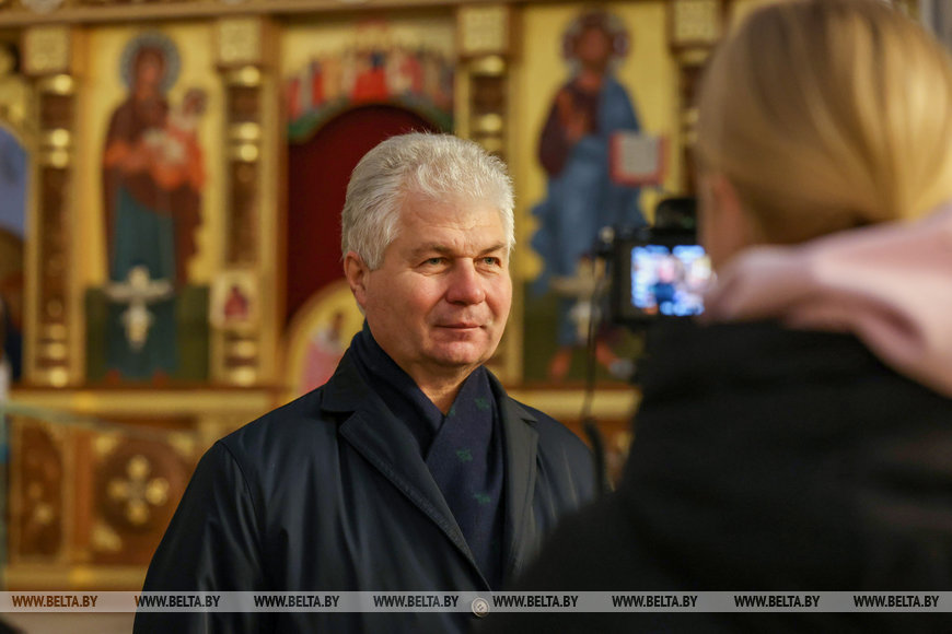 Александр Румак, уполномоченный по делам религий и национальностей: "Через акцию молодежь приобщается к восстановлению святынь, наводит порядок у памятников. "Они ведь и на кладбищах бывают. А там находятся часовни, каплицы. И когда молодой человек своими руками соприкасается с этими святынями, я думаю, это откладывается у него в душе. Он понимает, что есть то, что нас всех объединяет, и это надо беречь и сохранять. Ведь храмы строятся на века. Сегодня были посажены деревья на территории вокруг храма. Уверен, что ребята таким образом получили маленький заряд любви к своему отечеству".
