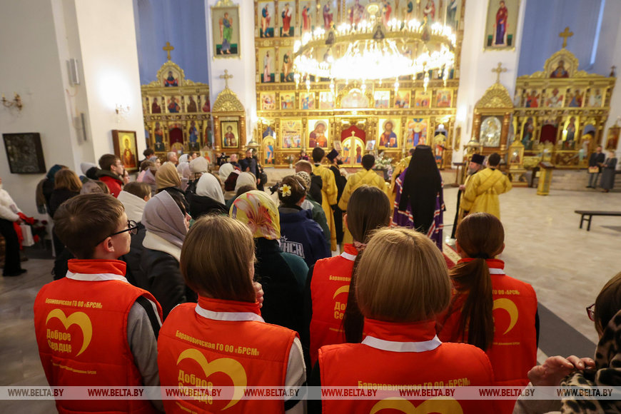 В мероприятии, организованном Белорусским республиканским союзом молодежи совместно с Белорусской Православной Церковью, приняли участие волонтеры движения БРСМ "Доброе Сердце" из всех регионов Беларуси. Начало акции положила молитва "Сила в единстве: молитва за Беларусь, ее прошлое и будущее". | | |  | | | | Александр Румак, уполномоченный по делам религий и национальностей: "Это самый большой строящийся храм в Минске, и он имеет статус второго кафедрального собора Минской епархии. Символично, что и финал акции проходит здесь. Этот проект уже не один год проводится Белорусским республиканским союзом молодежи вместе с аппаратом Уполномоченного по делам религий и национальностей. Акция важна для духовно-нравственного воспитания молодежи, приобщения ее к нашим святыням". | | |  | | | Епископ Несвижский Авксентий, викарий Патриаршего Экзарха всея Беларуси, возглавил молебен перед началом доброго дела. Его Преосвященству сослужили председатель Синодального отдела Белорусской Православной Церкви по взаимодействию с казачеством, настоятель прихода храма в честь иконы Божией Матери «Всех скорбящих Радость» города Минска протоиерей Игорь Коростелев и руководитель отдела по делам молодежи Минской епархии Белорусской Православной Церкви, клирик прихода храма великомученика Георгия Победоносца города Минска иерей Михаил Стреха.