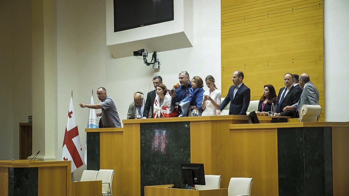 Опровержения Сергея Гаврилова не прозвучали ни на одном грузинском телеканале. Тем не менее, сессия МАП была открыта в грузинском Парламенте и сначала проходила в спокойном режиме. Но уже во время кофе-паузы радикально настроенные депутаты оппозиционных фракций с криками заняли трибуну Парламента, марш-броски радикалов "по коридорам власти" в поисках "врагов" - представителей российской делегации - вызвали возмущение всех участников международной встречи. Не обошлось без курьезов.