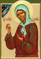 К служению Христову от чрева матерня предызбранная, праведная Матроно, стезею скорбей и печалей шествующи, твердую веру и благочестие явивши, Богу угодила еси. Темже, почитающе память твою, молим тя: помози и нам в любви Божии пребывати, старице блаженная.