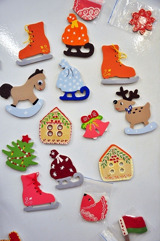 На ярмарке можно будет приобрести: декоративные ёлочные игрушки, снежинки, ангелов ручного производства, свечи, игрушки из дерева. Приятными и тёплыми в буквальном смысле слова подарками станут вязаные изделия: носки, варежки. Специально к главных зимним торжествам сотрудники социальных мастерских наладили производство новых сувениров: магнитов.
