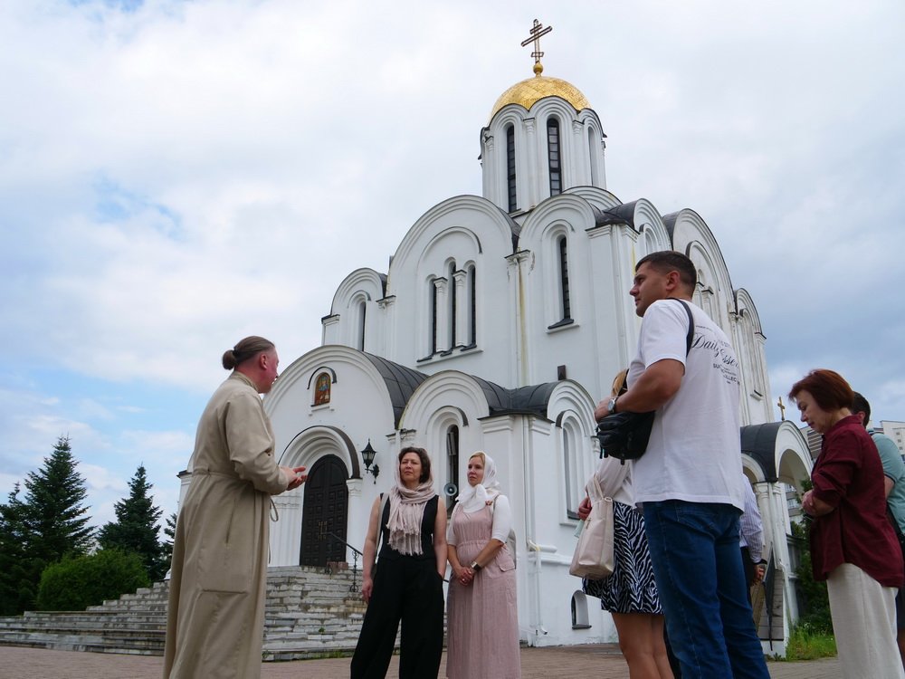 | 22 ИЮЛЯ 2025 (Вторник) 22:32:47 22 июля приход иконы Божией Матери "Всех скорбящих Радость" города Минска посетила с экскурсией группа сотрудников медицинского центра "Око".Провел экскурсию протодиакон Ярослав Близнюк. Он рассказал о создании храмового комплекса, о том, как 30 лет назад службы проходили в приспособленной под храм палатке, а сегодня здесь размещается величественный храм, высотой более 70 метров. Экскурсия началась от памятного камня, который был заложен в Минске 26 апреля 1991 года, в пятую годовщину аварии на Чернобыльской АЭС. Приход иконы Божией Матери "Всех скорбящих Радость" имеет особое значение для ликвидаторов и жертв Чернобыльской катастрофы. Каждый день, во время утреннего и вечернего богослужения, здесь читается особая Чернобыльская молитва. Отец Ярослав вспомнил, как проходили первые службы, о сложных и одновременно духовно радостных временах. Далее группа посетила Евфросиниевский храм, открытый в 1995 году. Это первый каменный храм Минска, построенный после 1917 года. Учитывая, что главный вход в храм был закрыт, отец Ярослав провел гостей через цокольный этаж, что добавило атмосферности. Увлекательное повествование отца Ярослава все больше захватывало гостей. Дальше все прошли в учебный корпус, где размещаются Социальные мастерские, воскресная школа, библиотека, духовное училище. Отец Ярослав рассказал историю строительства корпуса и участии Юнеско в его создании. Удивление вызвал домовый храм мучеников младенцев Вифлеемских. Он расположен на втором этаже учебного корпуса. После гости посмотрели портретную галерею подвижников и святых новомучеников Белорусской Православной Церкви. Остановившись у портрета священномученика Владимира Хираско, отец Ярослав более подробно рассказал о житии священномученика, служившего в Радосте-Скорбященском храме, действовавшем при училище слепых. Через зимний сад группа прошла к храму иконы Божией Матери "Всех скорбящих Радость". Отец Ярослав рассказал о его строительстве, создании иконостаса, храмовой иконе и святынях храма. Предложение подняться к купола барабана храма, на высоту около 60 метров, немного смутило и заинтриговало группу. Согласились все участники экскурсии. Все были удивлены тому, что открылось их взору: участники экскурсии смогли рассмотреть роспись барабана в деталях. Экскурсия завершилась под звон колоколов перед вечерней службой. Выходили гости одухотворенные и осеняли себя крестным знамением. / sobor.by/ (просмотров 1206) |