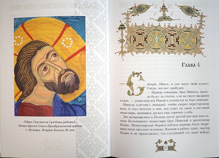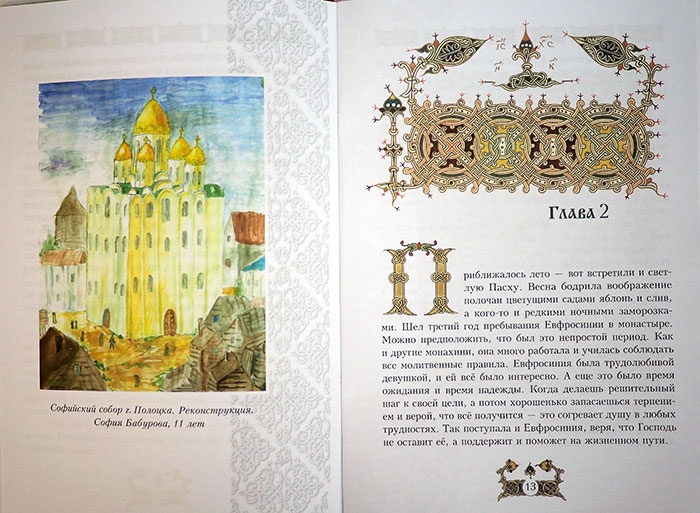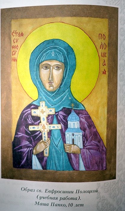 | 4 ДЕКАБРЯ 2017 (Понедельник) 18:12:12 В Минске в продаже появилась художественная книга для детей о жизни святой Евфросинии Полоцкой "Сказание о Евфросинии" с иллюстрациями, созданными детьми. Написал книгу иконописец Юрий Юрин, руководитель минской иконописной мастерской "Завет".Книга рассказывает о жизни и становлении святой Евфросинии Полоцкой, начиная с её детских лет и заканчивая паломничеством в Иерусалим и кончиной святой. По словам автора, книга может помочь детям на пути к воцерковлению. - Книга создавалась для детей, которые скорее относятся к светской среде, чем к церковной, - отмечает Юрий Юрин. – В своё время святая Евфросиния Полоцкая произвела на меня глубокое впечатление, поэтому хочется, чтобы и у детей сложилось о ней и о полоцких событиях сильное впечатление, чтобы после прочтения этой книги они пришли к нашей святой. Сам Юрий впервые попал к святой Евфросинии Полоцкой в раннем детстве. - Когда мне было лет 7-8, мы поехали в Полоцк из Борисова, но наш автобус опоздал и, когда мы приехали в монастырь, к мощам уже никого не пускали, - рассказывает он. - Но мне настолько захотелось попасть к святой Евфросинии, такая любовь к ней возникла, что мы очень просили монахиню, чтобы она нас пустила. И единственный, кого она пропустила, это был я… Меня это так впечатлило! Как будто сама святая Евфросиния меня приняла и благословила на будущую жизнь… Она повлияла и на мой выбор заняться иконописью - хочется своим творчеством нести в мир какой-то свет! Книга "Сказание о Евфросинии" содержит исключительно исторические данные, но там, где в истории есть пробелы, в книге они заполнены художественными реконструкциями, характерными для 12 века, когда жила святая. Будучи иконописцем автор по роду своей деятельности много изучал древний Полоцк и культурное пространство 12 века. При этом написана книга художественным живым языком, понятным для детей - на протяжении 4 лет Юрий был руководителем детской иконописной студии. Особое место в книге занимают иллюстрации, в числе которых – лучшие копии фресок Спасо-Преображенского храма в Полоцке, созданные детьми из иконописных мастерских Минска и Борисова. Ребята писали фрески с фотографий. Увидеть эти работы можно не только в книге, но и в рамках выставок - так одна из них во время нашего общения с Юрием проходила в главном корпусе БНТУ в Минске. - Для детей участие в проекте "Лики Полоцка" стало очень интересным опытом приобщения к родной культуре, - говорит Юрий. – Вот лик Спасителя, а вот - Никита воин, это копии с полоцких фресок. Хотелось запечатлеть именно лики – образы такие сильные! - А впечатления детей от книги "Сказание о Евфросинии" уже знаете? - Знаю – смеётся. – Моя 5-летняя дочь сказала, что хочет быть как Евфросиния. Мы ей читали эту книгу по очереди с женой. Много книг уже подарили. Дети спят с ней, прячут под подушки. Так что реакция положительная, и это придаёт нам большой оптимизм. Приобрести книгу можно на книжной ярмарке на КЗ Минск либо заказать по интернету. Справка: Юрий Юрин – иконописец, руководитель минской иконописной семейной мастерской "Завет". В этом году в мастерской "Завет" был создан полномасштабный список чудотворной иконы Божией Матери Минской для храма в Могилёвской области. - Для нас создание этого списка был просто подарком судьбы! – говорит Юрий. - Мастерской особенно до