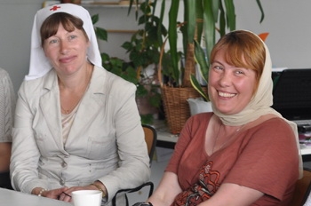 Помощница старшей сестры Любовь Шаталова рассказала, что уже бывала в Минске и посещала Центр духовного просвещения и социального служения «Всех скорбящих Радость»: «Меня очень впечатлили мастерские, где созданы рабочие места для инвалидов, где они могут трудиться, а также заниматься творчеством, и мне захотелось, чтобы и другие наши сёстры побывали здесь».