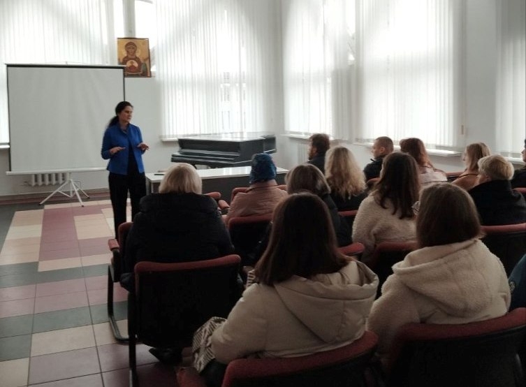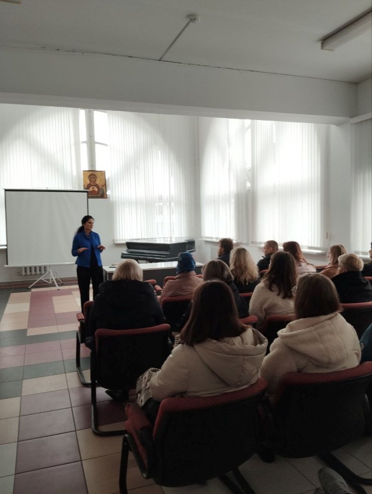 Образовательное мероприятие для слушателей провела руководитель Социальных мастерских прихода Кравцова Марина Викторовна, кандидат психологических наук, доцент, Лауреат Премии Президента Республики Беларусь "За духовное возрождение". Инструктора по труду Социальных мастерских познакомили учащихся с практическим опытом работы.