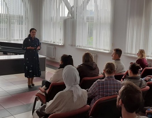 | | 16 СЕНТЯБРЯ 2025 (Вторник) 15:41:24 Руководитель Социальных мастерских прихода храма иконы Божией Матери "Всех скорбящих Радость" кандидат психологических наук, доцент, Лауреат Премии Президента Республики Беларусь "За духовное возрождение" Марина Викторовна Кравцова организовала и провела образовательное мероприятие для слушателей специальности переподготовки «Педагогическая деятельность специалистов» ИПКиП БГПУ. В рамках переподготовки будущие учителя в сфере интегрированного обучения на базе Социальных мастерских изучили и обсудили значение и задачи инклюзивного процесса в работе с детьми с особенностями психофизического развития.