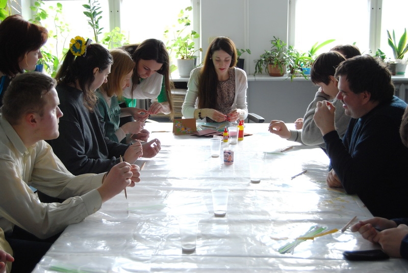 Мастер-класс по изготовлению открыток в технике квиллинг (искусство изготовления плоских или объёмных композиций из скрученных в спиральки длинных и узких полосок бумаги) организовали представители волонтёрского объединения «Равенство» факультета специального образования Белорусского государственного педагогического университета имени Максима Танка для сотрудников социальных мастерских прихода иконы Божией Матери «Всех скорбящих Радость». Провела мастер-класс знаток техники квиллинга, преподаватель-дефектолог Наталья Вишневская.