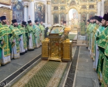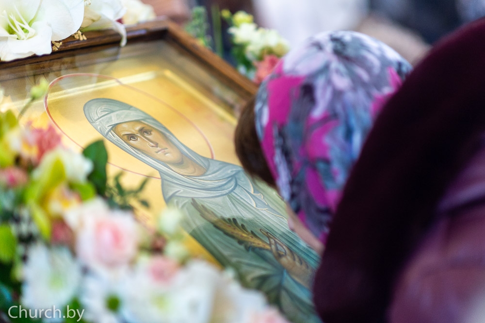 По заамвонной молитве Патриарший Экзарх, сослужащие епископы и священнослужители совершили славление святой блаженной Валентине Минской.