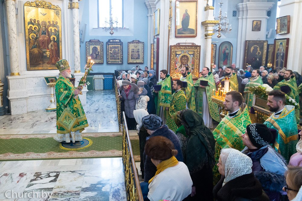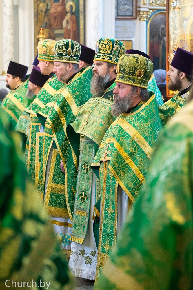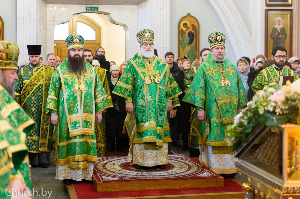 Архипастырям сослужили благочинные и настоятели минских храмов, клирики кафедрального собора.