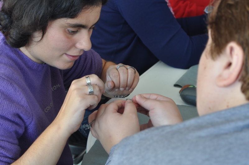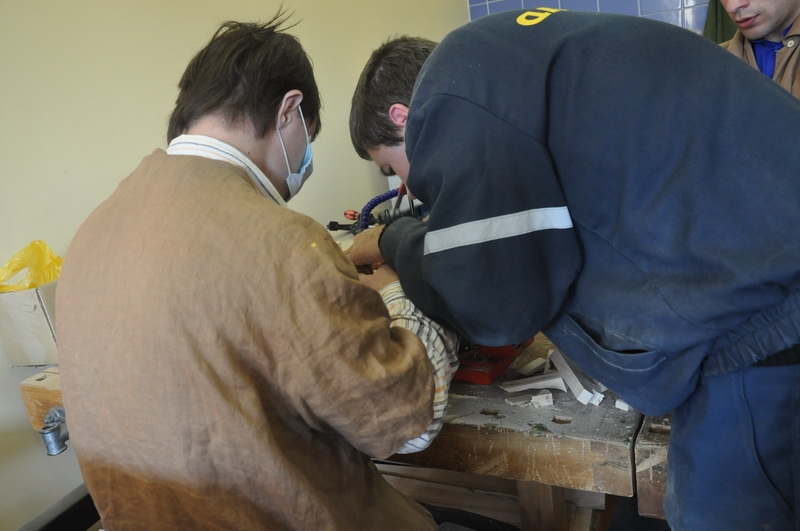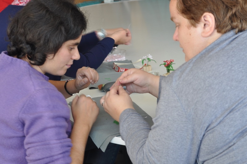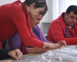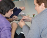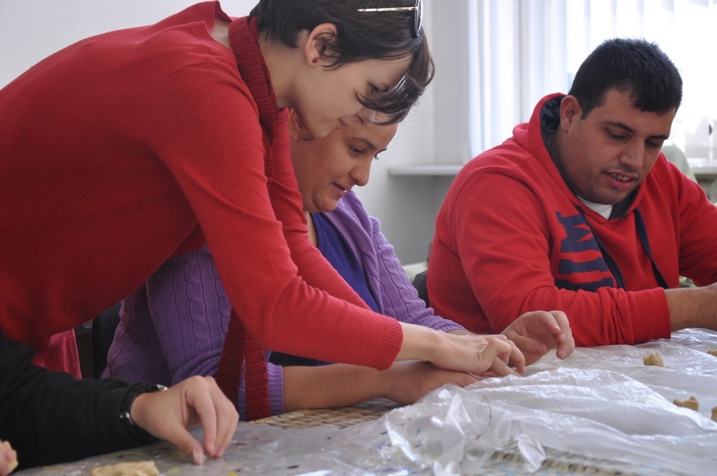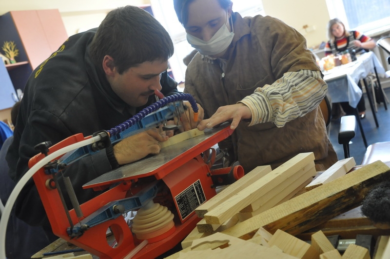 День открытых дверей для проживающих в психоневрологических интернатах, будущих выпускников школ-интернатов для детей с особенностями психофизического развития и подопечных отделений дневного пребывания инвалидов при центрах территориального обслуживания населения состоялся сегодня в социальных мастерских для людей с ограничениями прихода Иконы «Всех скорбящих Радость». Сотрудники мастерских под руководством инструкторов давали мастер-классы по деревообработке, вязанию, бисероплетению, лепке и др. В мастер-классах принимали участие и гости из Специального образовательного центра при Фивской и Ливадийской митрополии. В фойе первого этажа учебного корпуса развернулась выставка работ людей с ограничениями.