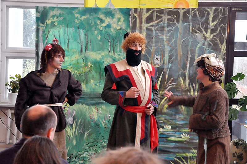 Как рассказали в братстве Владимира Хираско, сценарий сказки родился на Страстной Седмице, тогда же и начались репетиции. Костюмы, декорации – все это ребята сделали сами буквально за неделю: «днюя и ночуя в приходе».