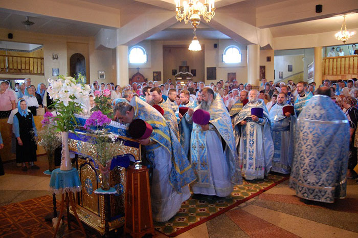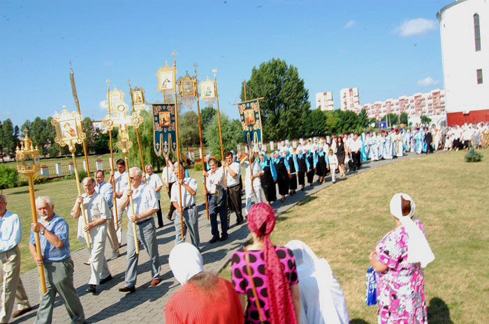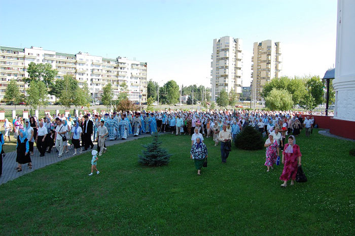 В Свято-Воскресенском соборе-памятнике в честь 50-тилетия победы в Великой Отечественной войне (Брест) 21 июля прошел престольный праздник нижнего храма в честь Казанской иконы Божьей Матери. На праздник приехали приглашенные священники. Перед службой был совершен чин освящения воды. Из-за многочисленности людей, которые пришли в этот день в церковь, служба была перенесена в верхний храм. После Божественной Литургии и крестного хода все желающие перешли в нижний храм Казанской иконы Божьей Матери и там был отслужен молебен. Настоятель собора отец Владимир Корнелюк поздравил всех прихожан и приехавших гостей с совершением богослужения и поблагодарил за совместную молитву. Свято-Воскресенский собор в Бресте - cамый большой православный храм в Бресте. Как форпост православия стоит он на героической брестской земле. Пять его куполов символизируют Главу Церкви — Христа и четырех апостолов-евангелистов. Храм и рядом стоящая колокольня - как вечные, неугасимые свечи, возжженные благодарными потомками в память о воинах, погибших в 1941 -1945 годах за Победу. /sobor.by/ Юлия Чепелевич. Фото - Влад Гурин. (просмотров 11330)