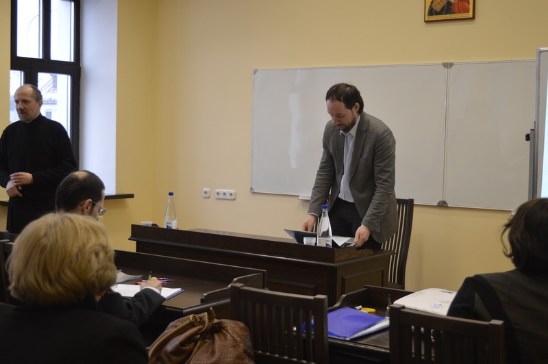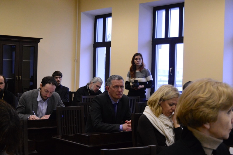 "Межконфессиональной полемике о правах человека в контексте дискуссии о постсекуляризации" было посвящено выступление кандидата философских наук, кандидата богословия, проректора по научной работе Института теологии БГУ прот. Сергия Мовсесяна.
