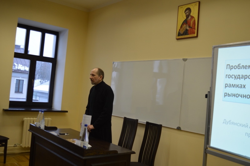 В том числе, в МинДС состоялся научный семинар "Христианство и современные проблемы экономики", в котором приняли участие проректор по научной работе Минских духовных академии и семинарии доцент А.В. Слесарев, д.э.н., кандидат богословия диакон Константин Голубев, доктор экономики, профессор, директор Института регионального развития и стратегического управления Нодар Шалвович Грдзелишвили, д.э.н., профессор, заведующий кафедрой экономической теории экономического факультета Санкт-Петербургского государственного университета Виктор Тимофеевич Рязанов, д.э.н., профессор, зав. кафедрой истории экономики и экономической мысли экономического факультета Санкт-Петербургского государственного университета Александр Николаевич Дубянский, д.э.н., заведующий кафедрой международного менеджмента экономического факультета БГУ, председатель ассоциации "Ойкономос" Сергей Владимирович Лукин, к. э. н, доцент кафедры экономической теории экономического ф-та СПбГУ Александр Юрьевич Протасов.