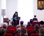 Руководитель Отдела религиозного образования и катехизации С. Мистюкевич выступила с докладом о деятельности Воскресных школ епархии, а также положении дел с преподаванием факультатива "Основы православной культуры" в государственных школах.