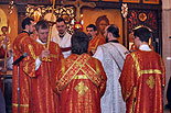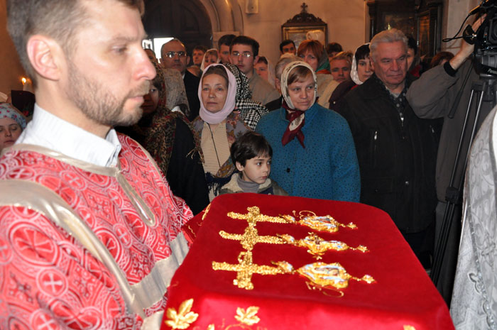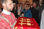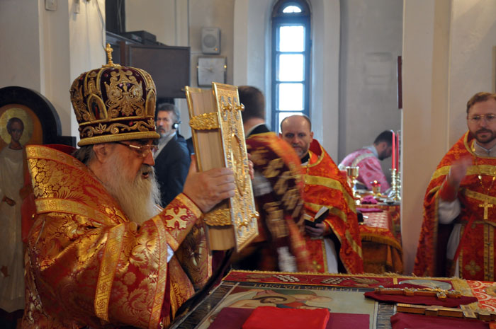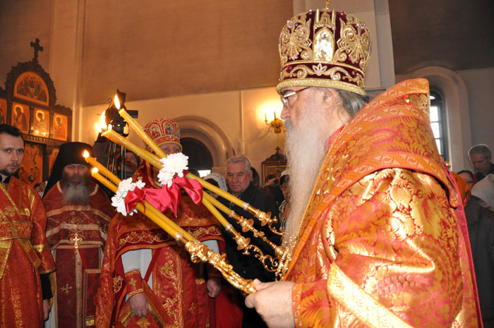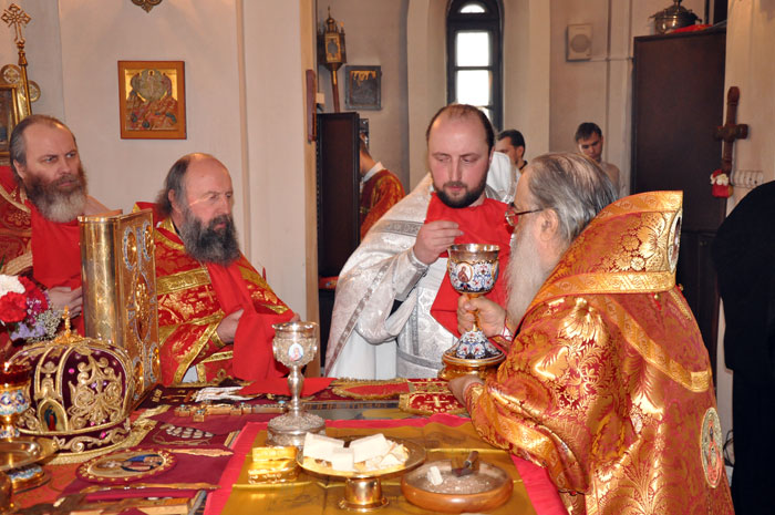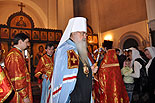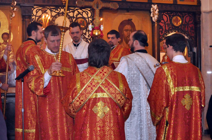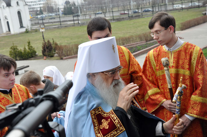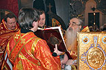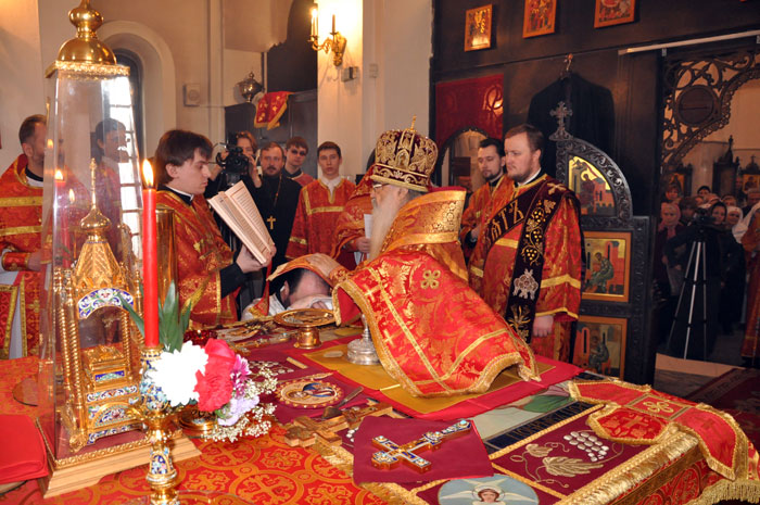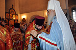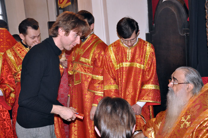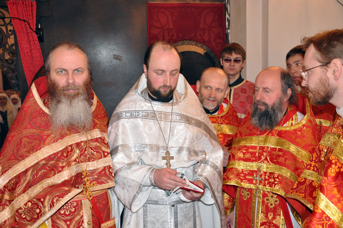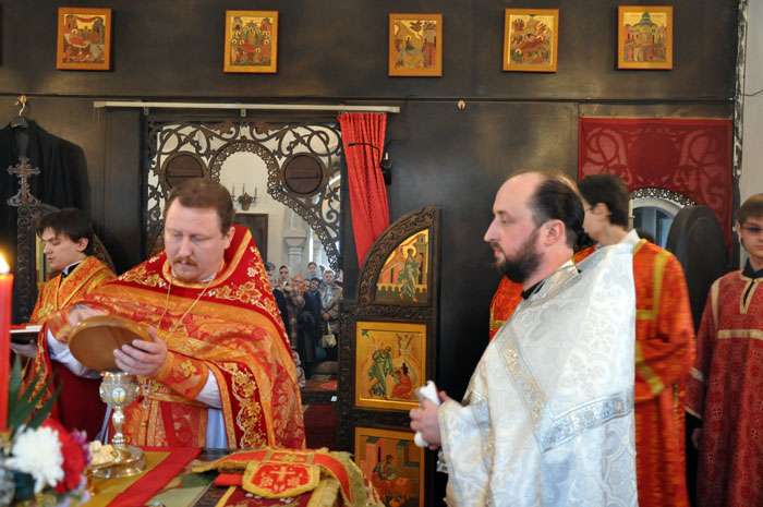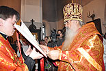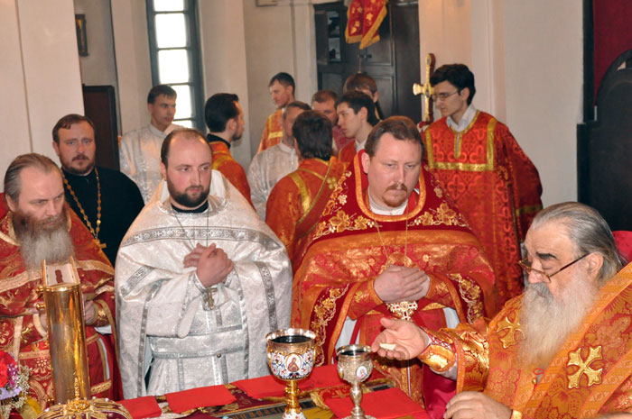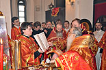Митрополит Минский и Слуцкий Филарет, Патриарший Экзарх всея Беларуси 8 апреля за Божественной Литургией в минском приходе иконы Божией Матери «Всех скорбящих Радость» рукоположил диакона Дионисия Коростелёва во пресвитера. Владыке сослужили секретарь Минской епархии протоиерей Николай Коржич, духовенство Минской епархии и клир прихода во главе с настоятелем протоиереем Игорем Коростелёвым. Также за богослужением Митрополит Филарет посвятил пономаря Илью Свиридовича во иподиакона. По окончании богослужения глава Администрации Фрунзенского района Борис Васильев поздравил Предстоятеля Белорусской Православной Церкви Митрополита Филарета с 75-летием и вручил Владыке и духовенству прихода грамоты и благодарственные письма администрации района. От лица сестричества во имя Евфросинии Полоцкой старшая сестра Тамара Метто также поздравила Владыку Филарета с юбилеем. Дионисий Коростелёв родился 4 апреля 1976 г. Хиротония во диакона - 14 апреля 2004. В 2008 г. окончил Минскую духовную семинарию. Окончил 2 курса Гуманитарного института, ф-т «Социальная психология». Помощник председателя Приходского совета. /sobor.by/ Марфа Шило (просмотров 5251)
