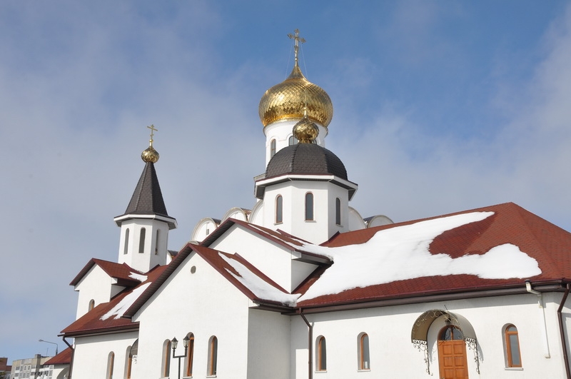 В настоящее время на территории прихода находятся три храма: церковь в честь Святой блаженной Ксении Петербургской, нижний храм в честь мучениц Веры, Надежды, Любови и матери их Софии и главный храм в честь Архистратига Божия Михаила. В приходе работает воскресная школа, действует сестричество милосердия. / sobor.by/ (просмотров 4691)