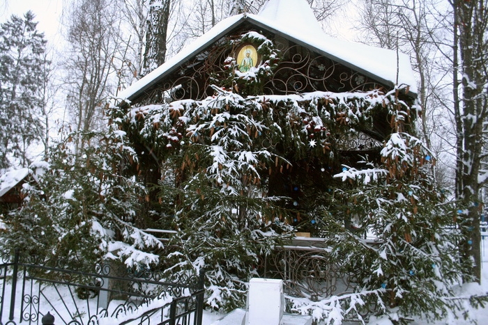 В эти рождественские дни паломники преобразили место упокоения матушки Валентины живыми елями с шишками, мхом, барвинком, веточками рябины и фезалиса. У входа в сень паломников встречает Рождественский вертеп. Найдите возможность приехать на святое место отдохнуть душой. При желании здесь можно и потрудиться во славу Божию.