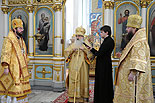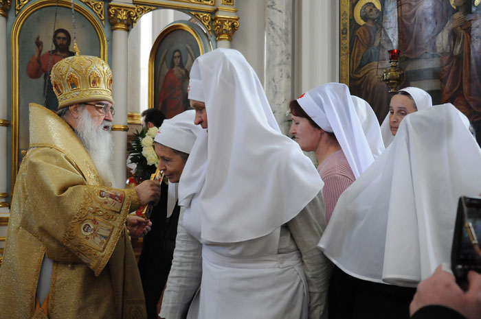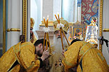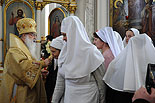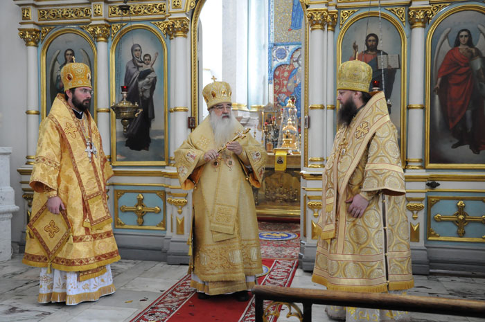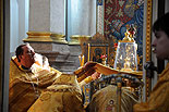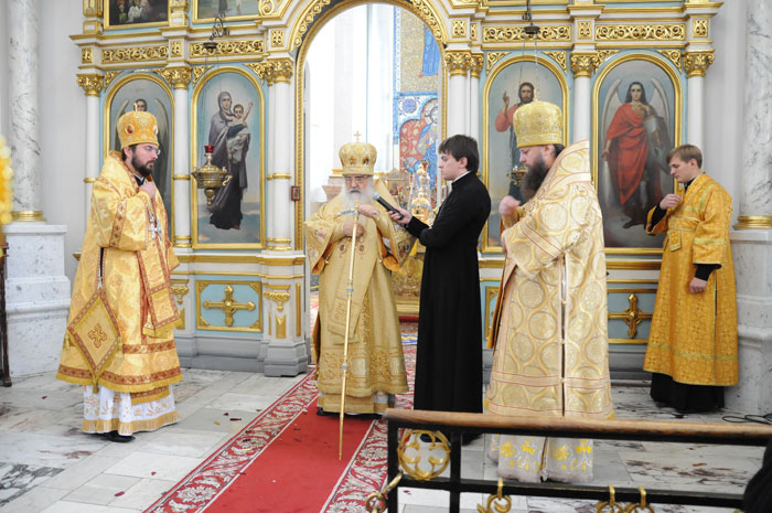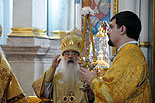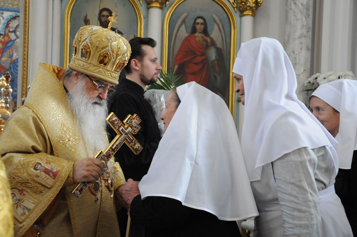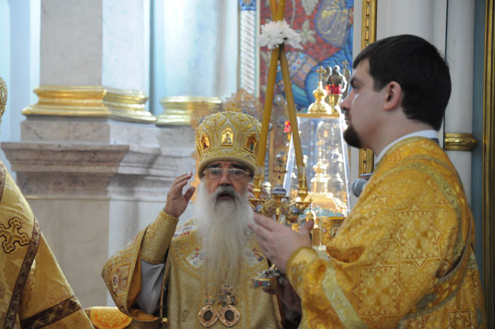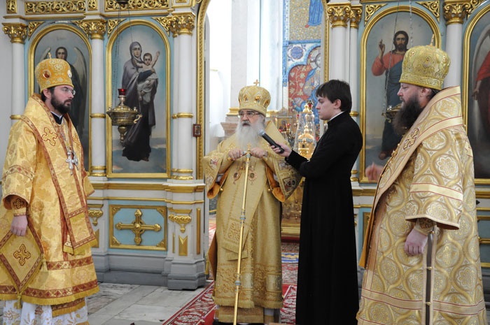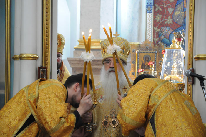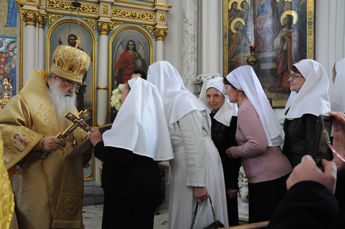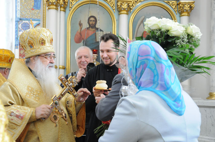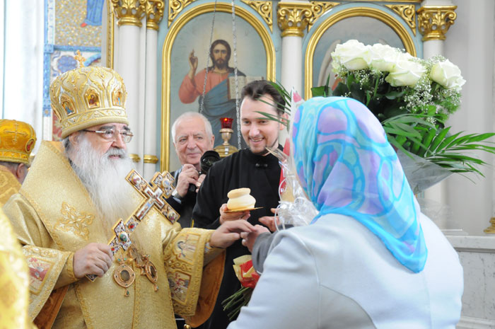 В Минском Свято-Духовом кафедральном соборе состоялось чествование Его Высокопреосвященства Филарета, Митрополита Минского и Слуцкого, Патриаршего Экзарха всея Беларуси по поводу 45-летия епископского служения. Приветственный адрес Патриарха Московского и всея Руси Кирилла зачитал архиепископ Новогрудский и Лидский Гурий. «Надеюсь, что и впредь Ваше служение в винограднике Христовом будет столь же плодотворно и востребовано Церковью и обществом. Предстательством Царицы Небесной да хранит Вас Податель всех благ в добром здравии и духовной радости на многая лета.»- говорится в поздравлении Его Святейшества. От имени духовенства Владыку Филарета поздравил протоиерей Николай Коржич, секретарь Минского епархиального управления. Поздравления и пожелания многих лет служения на ниве Христовой прозвучали от сестричества святой праведной Софии Слуцкой и многочисленных верующих. Хиротония архимандрита Филарета во епископа Тихвинского, викария Ленинградской епархии была совершена 24-го октября 1965 года за Божественной Литургией в Троицком соборе Александро-Невской Лавры. 14 мая 1966 года Святейший Патриарх Московский и всея Руси Алексий I и Священный Синод определил Преосвященному Филарету быть епископом Дмитровским, викарием Московской епархии, ректором Московской Духовной Академии. В сентябре 1971-го года владыка назначен на кафедру Архиепископа Берлинского и Среднееевропейского, Патриаршего Экзарха Средней Европы. Авторитет Владыки как богослова, как человека, положившего все свои силы и многочисленные таланты на алтарь служения Богу и Церкви в мире высок по сей день. Особенно ярко таланты Владыки Филарета проявились с 1978 года на белорусской кафедре: созданы новые епархии, восстановлены храмы, развивается богословское образование, расцветает певческая культура, в 1984 году был учреждён Собор Белорусских святых и установлено общецерковное празднование Собора Белорусских святых. Богослужения, которые возглавляет владыка Филарет, всегда исполнены большого молитвенного чувства и поистине являют собой торжество Православия . «Не нам, Господи, не нам, но Имени Твоему дай славу!»- эти слова псалмопевца Давида стали жизненным кредо юбиляра. Напомним, что 21 марта текущего года Митрополиту Минскому и Слуцкому Филарету исполнилось 75 лет. С юбилеем его поздравили Патриарх Московский и всея Руси Кирилл, Президент Беларуси Александр Лукашенко и Президент России Дмитрий Медведев. / sobor.by/ Нина Цирульник (просмотров 11108)