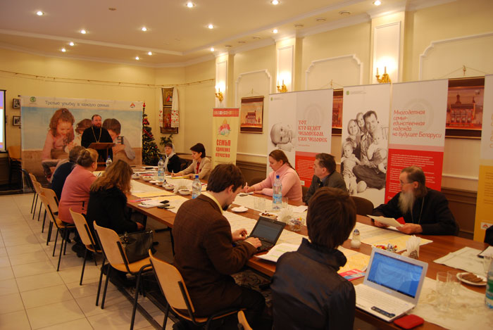 После соборной молитвы состоялся круглый стол для представителей СМИ «Беларусь без абортов – что ты для этого можешь сделать?» Вниманию участников круглого стола, организованного при поддержке Центра защиты материнства и семейных ценностей Белорусской Православной Церкви и Республиканской духовно-просветительской программы “Семья – Единение – Отечество”, были представлены статистические данные о демографической ситуации в Беларуси и о влиянии абортивной практики на прирост населения.