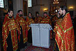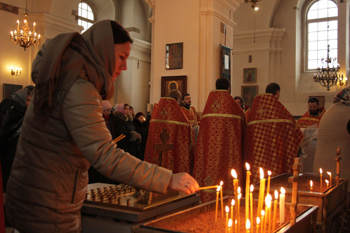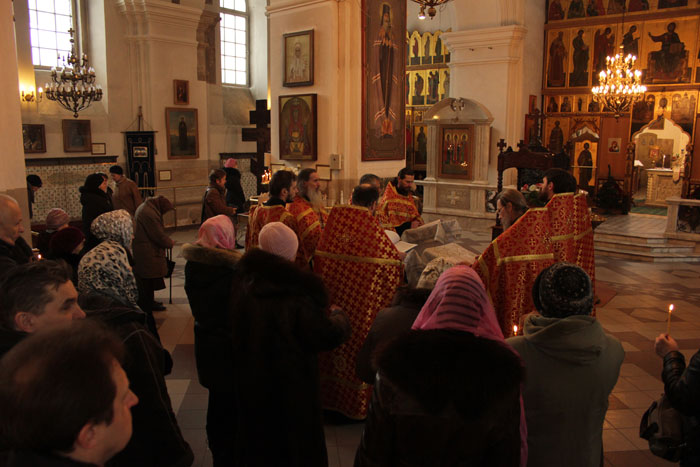 Клирики собора отслужили покаянный молебен ко Господу Богу, Пресвятой Богородице и святым мученикам 14 тысячам младенцам Вифлиемским о прощении греха детоубийства и об искоренении греха аборта в нашем обществе. Текст покаянного молебна разработан Синодальным отделом по церковной благотворительности и социальному служению Русской Православной Церкви.