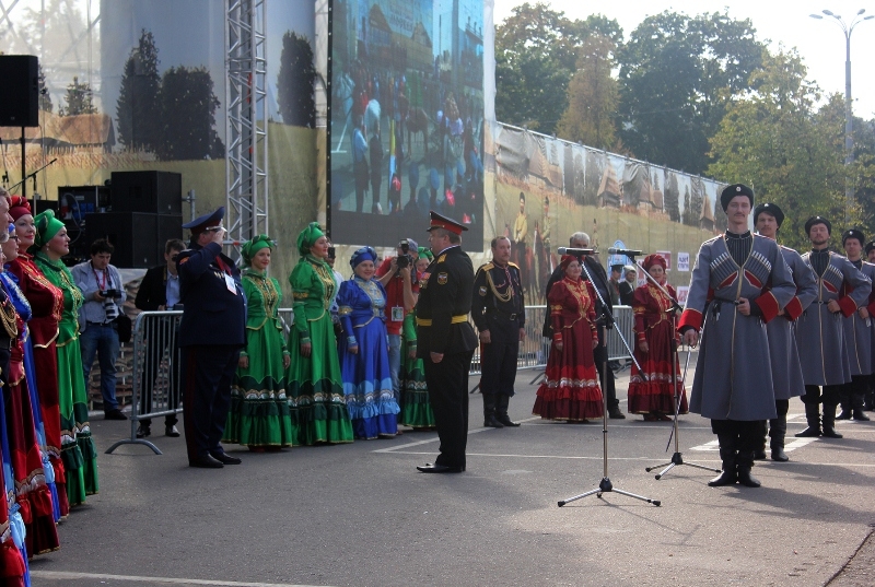 | 19 СЕНТЯБРЯ 2014 (Пятница) 13:04:42 13 сентября 2014 года казаки РОО «Белорусское казачество» приняли участие в IV Международном фестивале «Казачья станица - Москва», который проходил в Москве, на территории Олимпийского комплекса «Лужники». Его организаторами выступили Совет при Президенте РФ по делам казачества, Департамент межрегионального сотрудничества, национальной политики и связей с религиозными организациями города Москвы и Центральное казачье войско.Главным событием фестиваля по традиции стало возведение обыденного храма-часовни и проведение водосвятного молебна. Богослужение возглавил митрополит Ставропольский и Невинномысский Кирилл, Председатель Синодального комитета по взаимодействию с казачеством. В завершение фестиваля обыденный храм передали в дар станице Распопинской Волгоградской области с тем, чтобы он послужил возрождению казачьих поселений в регионе. Вслед за молебном состоялась церемония открытия фестиваля на главной сцене казачьего праздника. Все почетные гости в своих выступлениях отмечали высокий содержательный потенциал фестиваля и колоссальную энергию участников, раскрывших перед гостями все многообразие мира казачества. Был отмечен всё возрастающий интерес общества к проблемам казачества. Ответственный секретарь Совета при Президенте РФ по делам казачества Н.Н.Константинов в своем слове акцентировал внимание на участие в фестивале казаков из зарубежных стран. Участниками фестиваля стали казаки из всех областей Центрального федерального округа и 7 стран ближнего и дальнего зарубежья, в том числе казаки из Беларуси, Украины, Болгарии, Франции. На территории Лужников работали десятки площадок с демонстрацией лучших номеров джигитовки, акробатических фигур на коне, конной рубки лозы, шли соревнования II Всероссийского открытого чемпионата по рубке шашкой «Казарла»; взрослые могли принять участие в состязаниях по борьбе, стрельбе из лука, а для детей была организована специальная спортивная площадка. Митрополит Ставропольский и Невинномысский Кирилл, Председатель Синодального комитета по взаимодействию с казачеством поздравил всех участников фестиваля с праздником, которым стал для казаков и гостей ежегодный международный фестиваль «Казачья станица - Москва», и отметил, что проект Департамента межрегионального сотрудничества, национальной политики и связей с религиозными организациями города Москвы «Казачьи рубежи России» становится бессрочным. / sobor.by/ Руководитель пресс-центра РОО «Белорусское казачество» Владимир Громыко (просмотров 4712) |