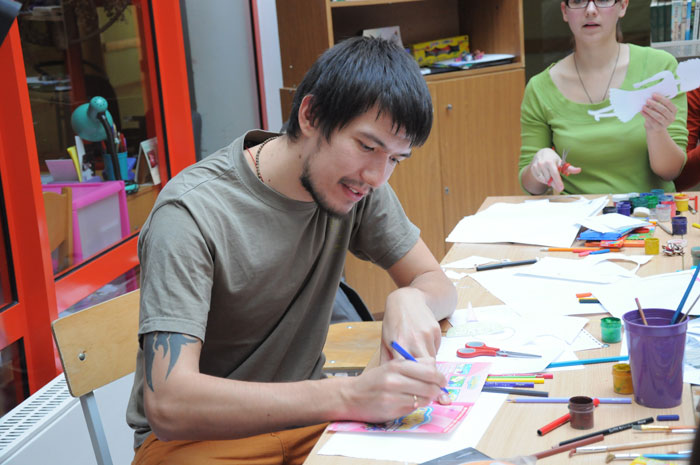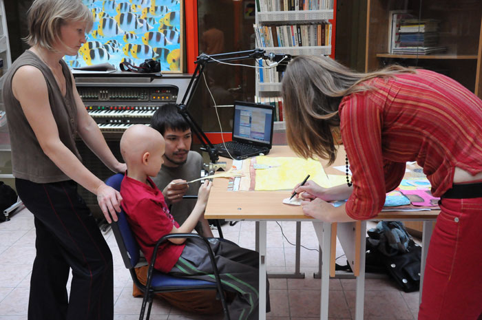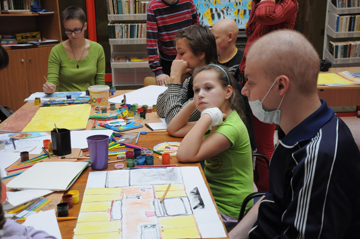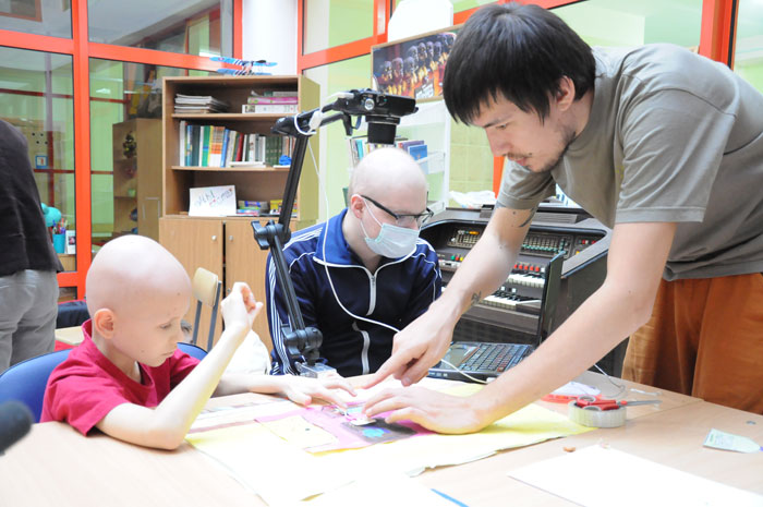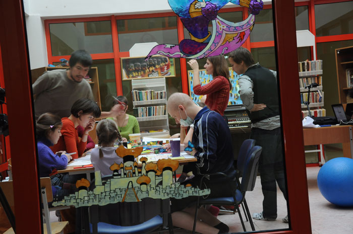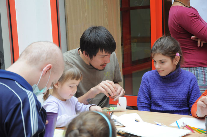 В течение нескольких дней российский мультипликатор Михаил Сафронов проводил мастер-классы для минчан. Художник приехал в Минск по приглашению волонтеров анимационной студии «Мы есть», которая снимает мультики с детьми из Детского центра онкологии и гематологии в Боровлянах. Главной темой общения была благотворительность и помощь детям. Петербургская детская анимационная студия «Да» работает с 2008 года. Организаторами выступили профессиональные мультипликаторы крупнейших студий России «Мельница» и «Смешарики». Сейчас занятия с детьми проходят ежедневно. В основном волонтеры занимаются с детьми, больными раком, с сиротами, инвалидами, подопечными Детского Кризисного центра, петербургского детского хосписа. В Минске Михаил Сафронов рассказал минским коллегам и про техническую сторону создания мультфильма, а также про отдельные психологические моменты общения с детьми, больными онкологическими заболеваниями. Итогом семинаров стало создание мультфильма на тему «Как трудно сказать прости». «Когда мы начали обсуждать тему «Прощения», неожиданно оказалось, что это очень глубокая и широкая тема. А до этого казалось, что найти хотя бы одно решение для визуализации этой истории будет очень сложно», пояснил Михаил Сафронов. Подготовка длилась целый день: сначала обсуждение, потом выбор материалов, «раскадровка». И вот мультипликаторы уже с детьми рисуют, вырезают, клеют, фотографируют. И всем нравится. Никто никого не заставляет. Здоровые дети рядом с больными чувствуют себя наравне. Взрослые только слегка направляют младших. И все складно и красиво. Итоговый мультик уже скоро можно будет увидеть на сайте: http://www.myspace.com/misha_safronov и miest.razvitie.by Михаил Сафронов, режиссер, сценарист, художник, фотограф, мультипликатор, педагог. В 1999 году окончил Петербургский институт Кино и Телевидения, факультет экранных искусств, режиссура кино. С 2005 года в сфере анимации. Работал на студиях «Мульт.ру», «Мельница», «Петербург» (Смешарики). С 2008 года один из организаторов детской анимационной студии «Да», работающей с тяжелобольными онкологическими детьми. / sobor.by/ Анна Копач (просмотров 5865)