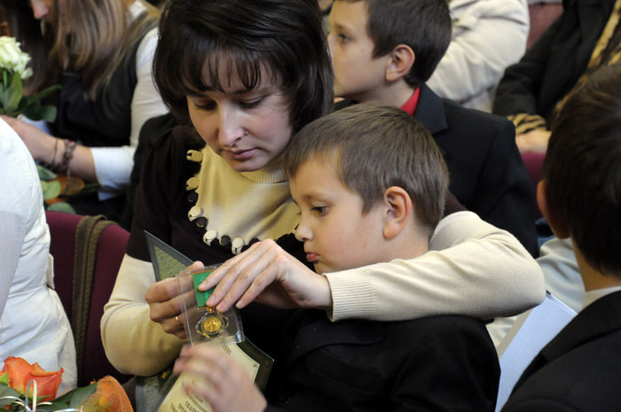 В канун Покрова Пресвятой Богородицы и Дня матери в минском Дворце искусств в рамках выставки «Покровский кирмаш» прошла Третья церемония награждения многодетных матерей медалями святой преподобной Евфросинии Полоцкой. Награду Белорусской православной церкви из рук отца Владимира Герасименко получили пять матерей: Ольга Артемчук и Ольга Томашкевич, мамы пяти детей, Лариса Вейник, Анна Линкевич и Евгения Братухина, мамы шести детей. Как отметил отец Владимир: «Цель христианской семьи – это вырастить святого. Человека, который вырастит и будет молиться не только за свою семью, но и за весь мир. В больших семьях больше шансов вырастить святого». И как показывает практика, в многодетных семьях дети чаще готовы делиться последним ради ближнего, ребята открыты и добры к людям. Его слова подтвердила мама Ольга Артемчук: «воспитывать одного ребенка гораздо сложнее. Поэтому особых трудностей я не чувствую с пятью детьми. Они все помогают друг другу. У нас царит мир и покой». После официальной части награждения с наступающими праздниками всех мам поздравила сольным концертом заслуженная артистка Беларуси Надежда Микулич./ sobor.by/ Анна Копач (0 Kb) (просмотров 10164)