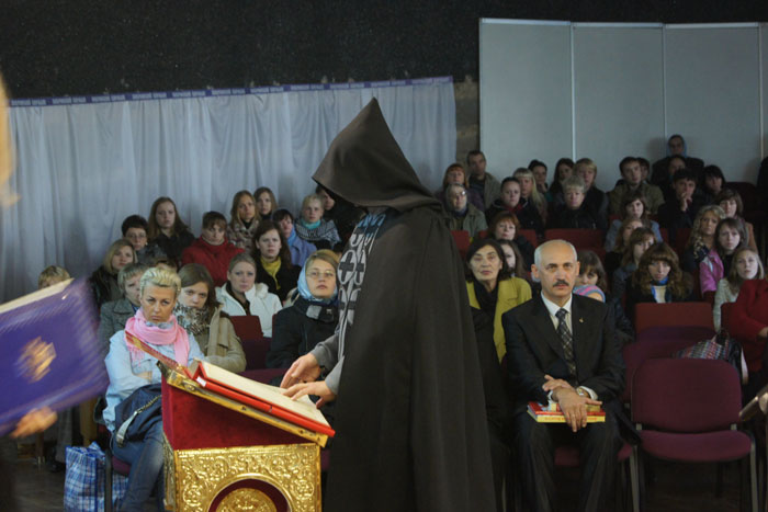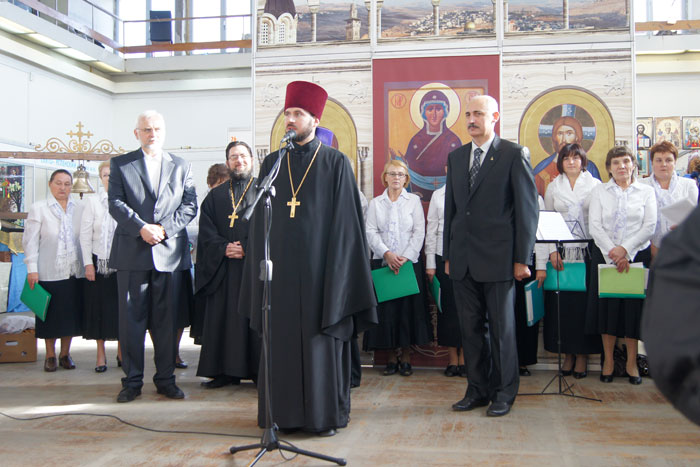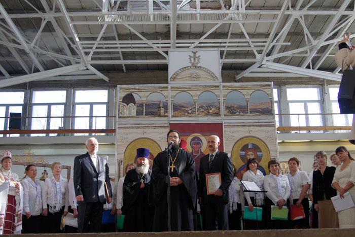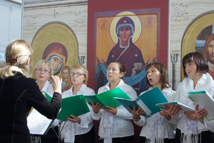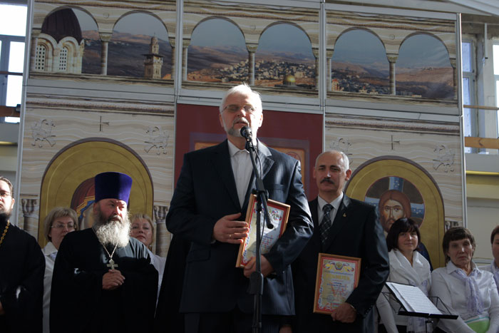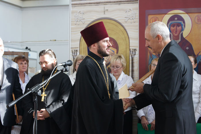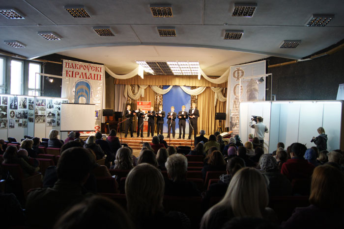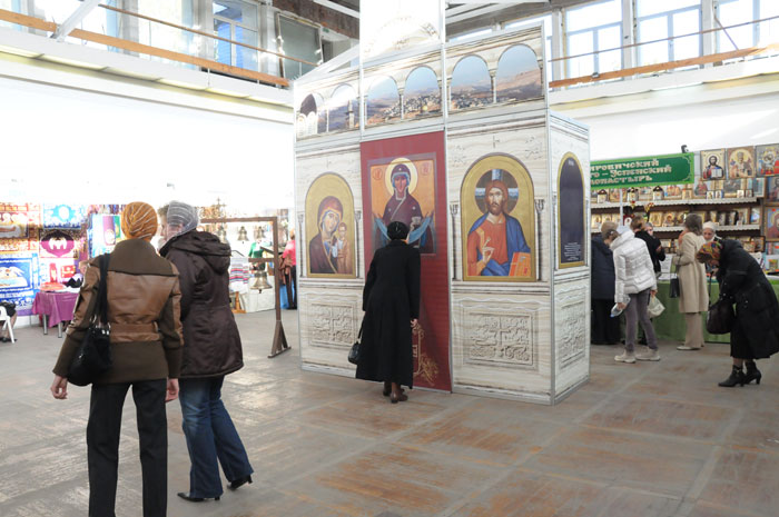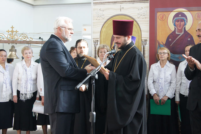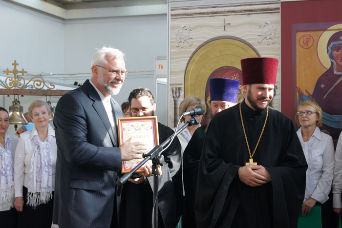| 9 ОКТЯБРЯ 2010 (Суббота) 20:33:48 Минский Дворец искусств открыл свои двери для всех желающих посетить выставку «Покровский Кирмаш». Посетителей ждало много сюрпризов от церковной утвари до концерта белорусской христианской песни «Аранта».Нынешняя выставка приурочена сразу двух событиям: Дню матери, который отмечается в Беларуси 14 октября, и 95-летию со дня рождения старца Митрофана. К юбилею старца была представлена фотогалерея, знакомящая зрителей с жизнью этого уникального человека. Поздравить всех мам с праздником можно на концерте, который был организован Республиканской научной медицинской библиотекой. Открытие выставки началось с презентации Камерного духовного театра Центра православной культуры «Спутник христианина» Издательства Белорусской Православной Церкви при участии Пресс-центра Дома прессы. Зрители, а это в основном были социальные педагоги минских школ и дети, увидели театрально-музыкальное представление о памятнике духовной культуры «Слуцкое Евангелие», также посмотрели короткометражный спектакль для молодежи (отрывок из театрального форума «Файрвол»). Одним из самых приятных подарков в день открытия было выступление мужского вокального ансамбля «Благовест» с музыкально-поэтической композицией «Яблони воскресения». Однако, главным сюрпризом было вручение грамот от Министерства культуры Российской Федерации белорусским деятелям культуры и просвещения Александру Савину и Владимиру Грозову «За вклад в фестивальное движение «Семья России» и популяризацию традиционных православных ценностей». В конце первого дня гости были приглашены на концерт христианской песни «Аранта». На сцену поднялись с исполнением авторских песен барды Дарья Кадамская, Андрей Мельников, Роман Абрамчук, также были сыграны аутентичные белорусские мелодии на дуде (волынка) с танцами. Организатором выступил приход в честь св. Николая Японского. / sobor.by/ Анна Копач (просмотров 5865) |