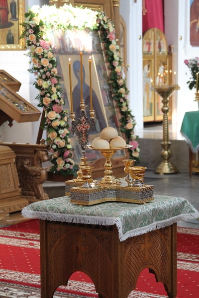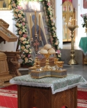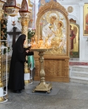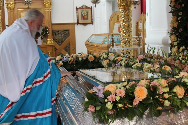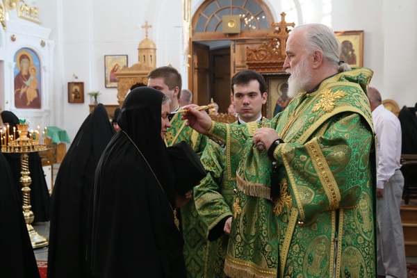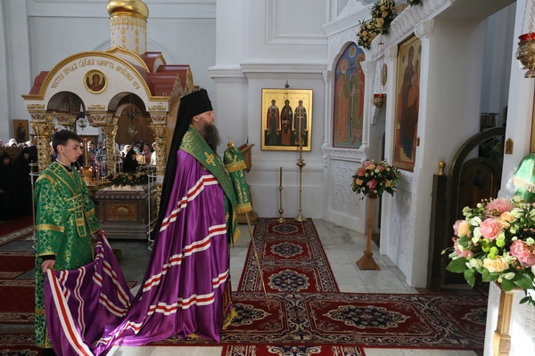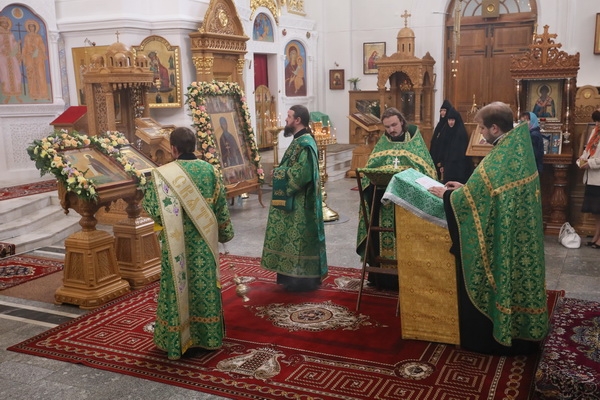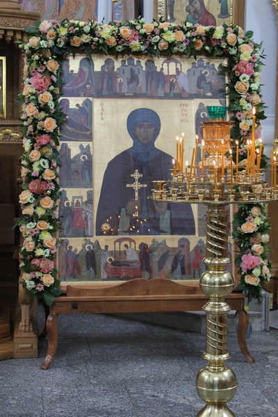 Днём, 4 июня, в Кресто-Воздвиженском соборе клириками монастыря иереем Игорем Лысенком и иереем Александром Макаровым была отслужена малая вечерня с акафистом преподобной Евфросинии, чем начались благословенные торжества в святой обители.
