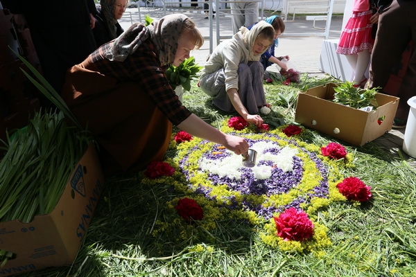 Из Беларуси, России и ближнего зарубежья в обитель съехались паломники. Большая радость для всех приезжающих – помолиться и потрудиться в эти праздничные дни в монастыре. Дорожка из зелени и цветов для праздничного крестного хода, плетение венков для украшения храмов и многие другие труды паломники разделяют в эти дни с сестрами и считают это большой радостью и благословением.