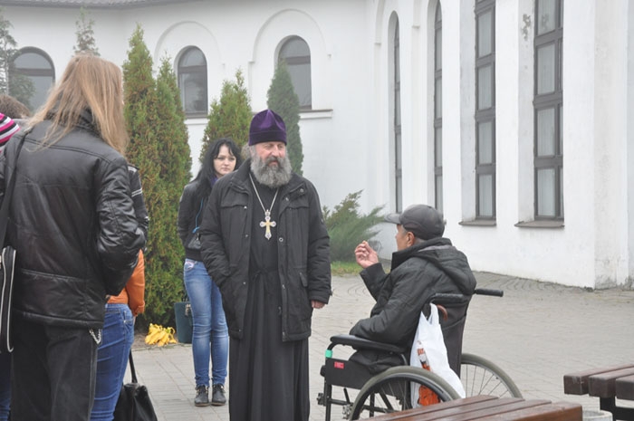 Настоятель прихода протоиерей Игорь Коростелёв провёл подробный экскурс в историю и современную жизнь прихода. Гости побывали в Свято-Евфросиниевской церкви и строящемся конкафедральном соборе в честь иконы «Всех скорбящих Радость», познакомились с работой социальных мастерских для людей с ограничениями. Затем в конференц-зале прихода состоялась встреча студентов с заведующей действующей в приходе Центральной библиотеки Белорусского Экзархата Светланой Фёдоровной Виноградовой, которая подробно рассказала о работе библиотеки, систематизации библиотечного фонда и его наполнении. Затем ребята смогли посетить читальный зал библиотеки, где им показали древние и редкие экземпляры книжного фонда, познакомили с периодическими и самыми читаемыми изданиями.