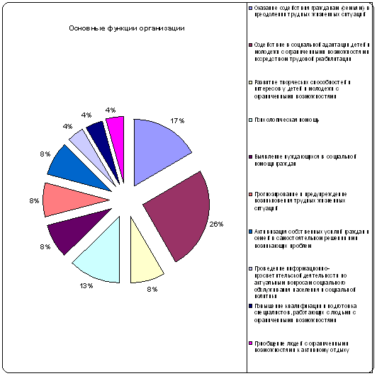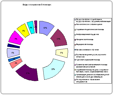 Результаты опроса показали, что наиболее развитыми являются направления работы, связанные с социальной реабилитацией (мероприятия направленные на развитие социальных навыков, расширение круга общения), доминирующими, эффективными направлениями также являются материальная помощь, психологическая помощь, трудовая занятость.