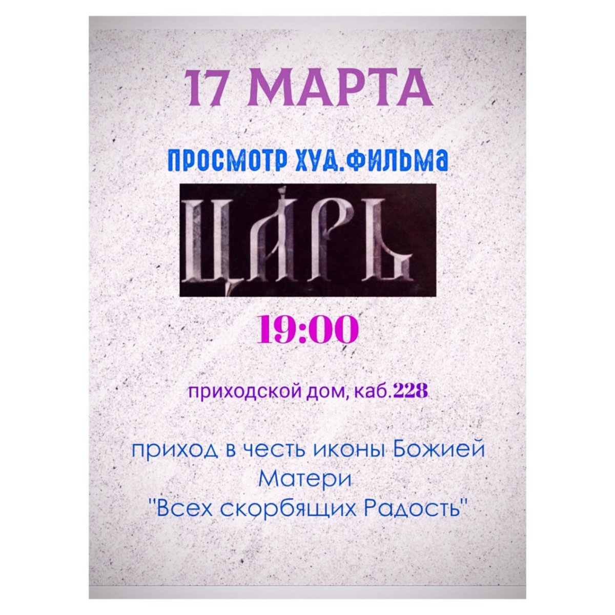17 марта братство священномученика Владимира Хираско прихода иконы Божией Матери "Всех скорбящих Радость" города Минска приглашает на просмотр фильма "Царь". Начало в 19.00.