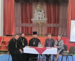 После молебна в храме святых равноапостольных Кирилла и Мефодия священнослужители, а также ответственные за катехизаторскую работу в благочиниях, представители отделов образования, спорта и туризма, преподаватели школ и гимназий собрались в средней школе №2, которая уже 6 лет является инновационной площадкой республиканского значения.