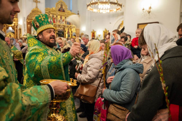 На утрени, по прочтении евангельского зачала епископ Авксентий совершил чин освящения ваий – ветвей вербы и ивы, в воспоминание торжественного входа Царя Славы Господа Иисуса Христа в Иерусалим на вольные страдания.