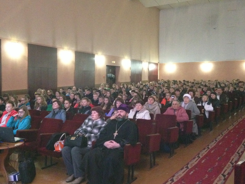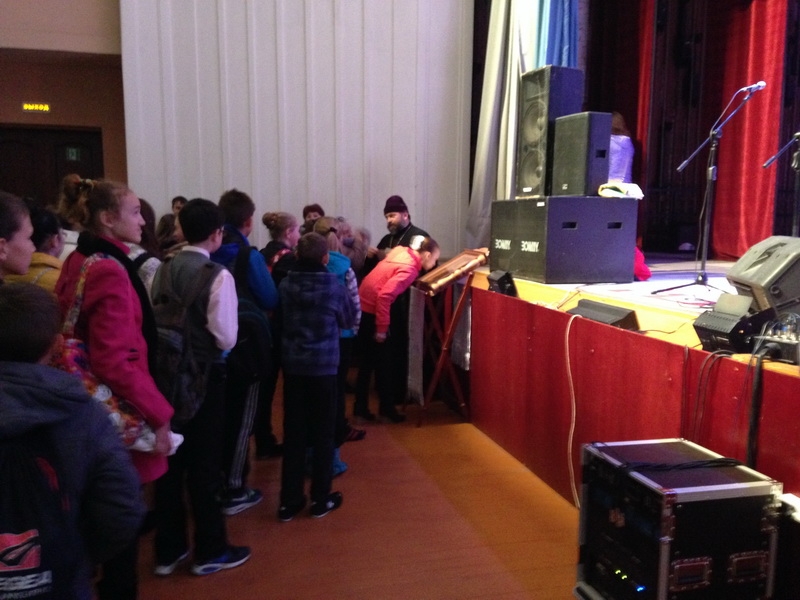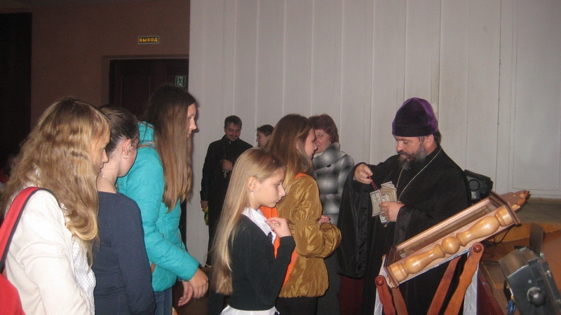 В зале, где проходил концерт, находилась икона преподобного Сергия Радонежского с частичкой его нетленных мощей, к которой смогли приложиться все школьники. / sobor.by/ eparhia.by (просмотров 3130)