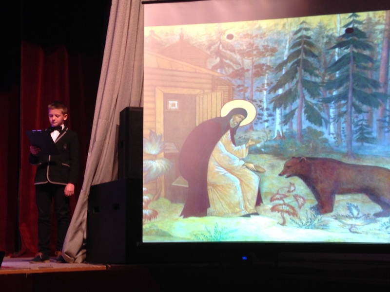 Юные артисты выступили перед зрителями с разножанровыми номерами: рассказывали о житии святого Сергия, читали стихи, детский хор «Лучик» исполнил песнопения и канты.