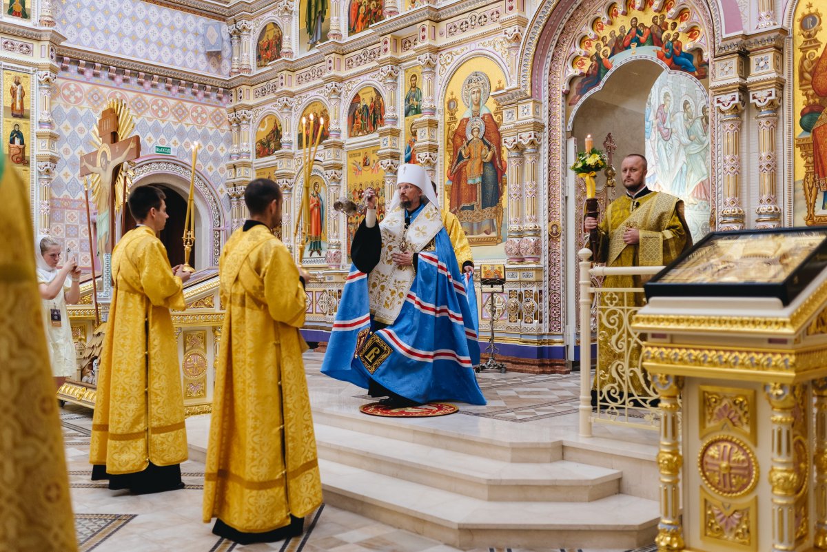 Затем архипастырь обратился к священнослужителям и верующим со словом назидания, в котором слова особой благодарности прозвучали в адрес тех, кто потрудился, сопровождая мощи благоверного князя Александра от Всехсвятского прихода к Свято-Духову кафедральному собору, чтобы здесь воздать славу святому.