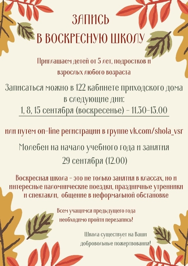 Всем учащимся необходимо написать заявление на зачисление в воскресную школу.