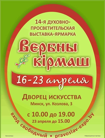 В преддверии праздника Пасхи и Вербного воскресения Белорусская Православная Церковь совместно с выставочным предприятием "Экспосервис" традиционно проводят международную Духовно-просветительскую выставку-ярмарку "Вербны кірмаш" во Дворце искусства в Минске.
