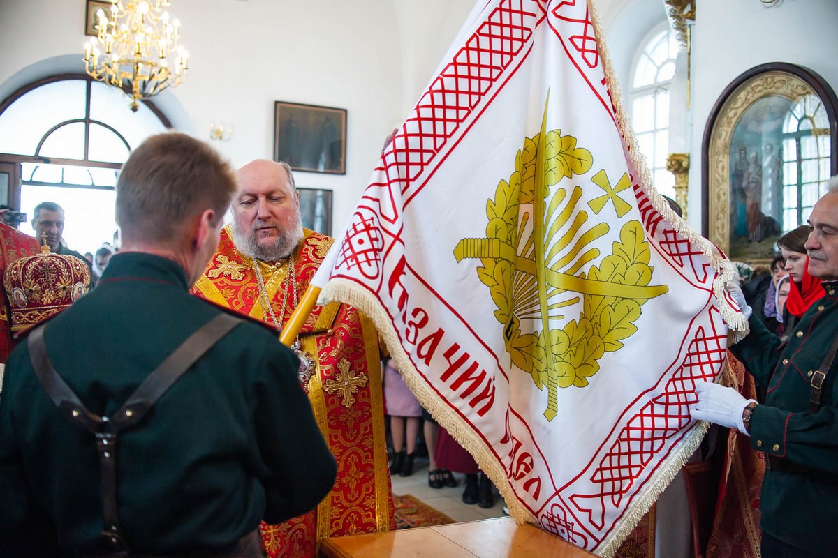 Атаман, в свою очередь, заверил: "Отныне оное знамя надлежит стать символом чести и славных дел во славу Божию". В подтверждении к сказаннному под сводами храма казаки громогласно отчеканили: "Любо… Любо… Любо…"