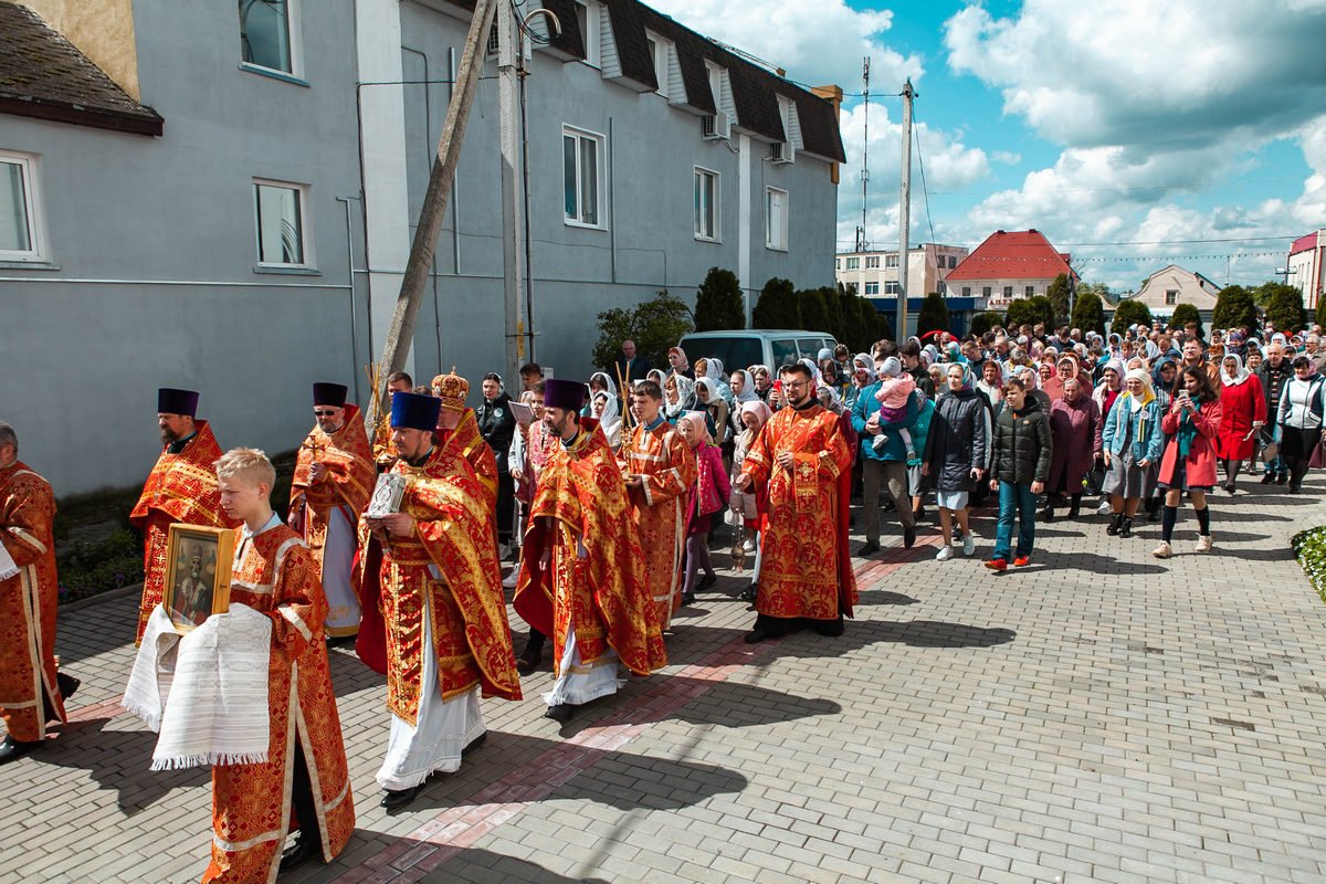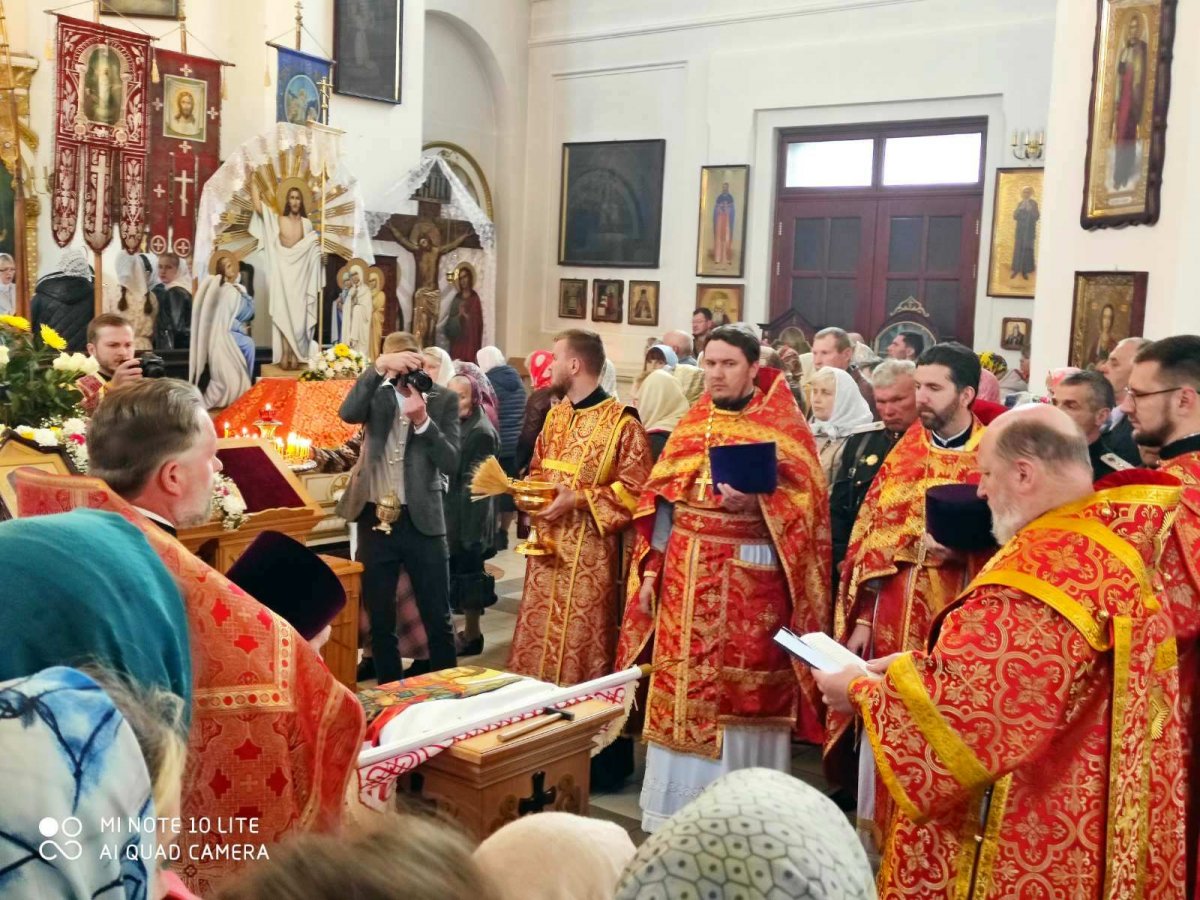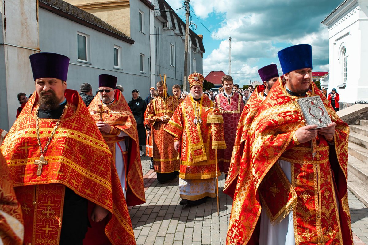 Чин освящение знамени состоялся перед началом праздничного богослужения которое возглавил епископ Полоцкий и Глубокский Игнатий в сослужении настоятеля прихода протоиерея Валерия Пашкевича.