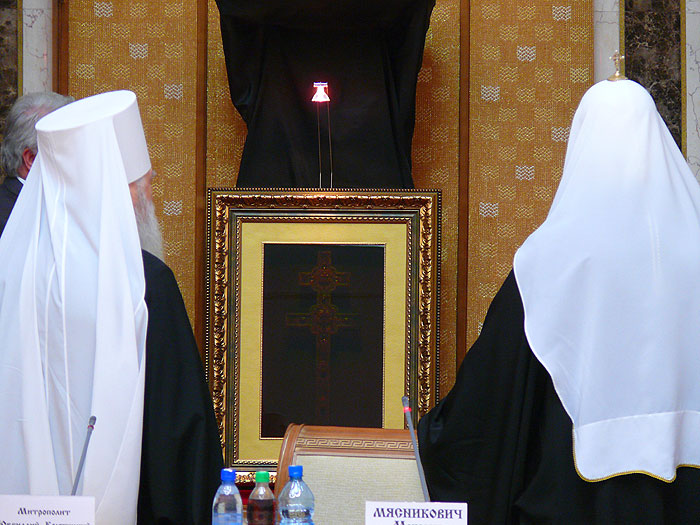 Патриарху Московскому и всея Руси Алексию II подарили голографическую копию Креста Евфросинии Полоцкой.