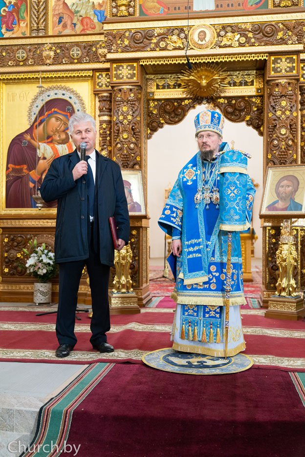 Затем с 30-летием прихода духовенство и прихожан храма поздравили уполномоченный по делам религий и национальностей Румак Александр Алексеевич и глава Фрунзенского района города Минска Шкруднев Сергей Анатольевич.
