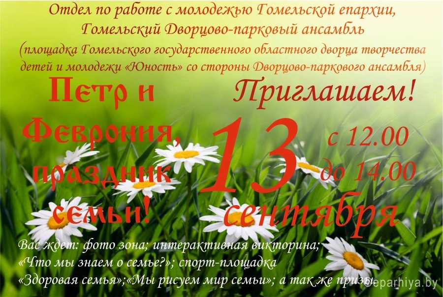 По благословению епископа Гомельского и Жлобинского Стефана в Гомельской епархии пройдёт ряд праздничных мероприятий, посвящённых празднованию дня памяти святых Петра и Февронии Муромских – покровителей семьи и брака.